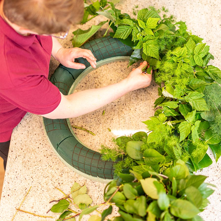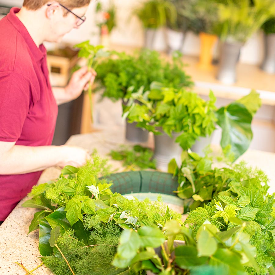 Trauerfloristik erfordert Ruhe und Respekt. In dieser Galerie zeigen wir die stillen, achtsamen Momente der Herstellung