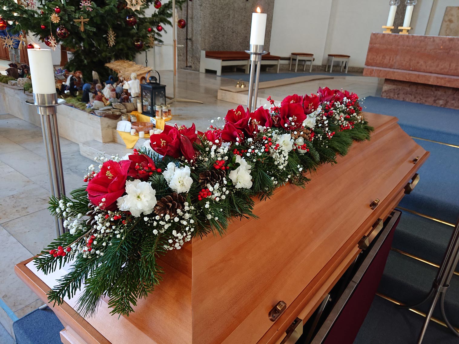 Sie können sich darauf verlassen, dass wir pünktlich und zuverlässig liefern, auch direkt zur Kapelle oder Kirche – damit Sie sich um nichts kümmern müssen.